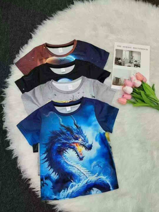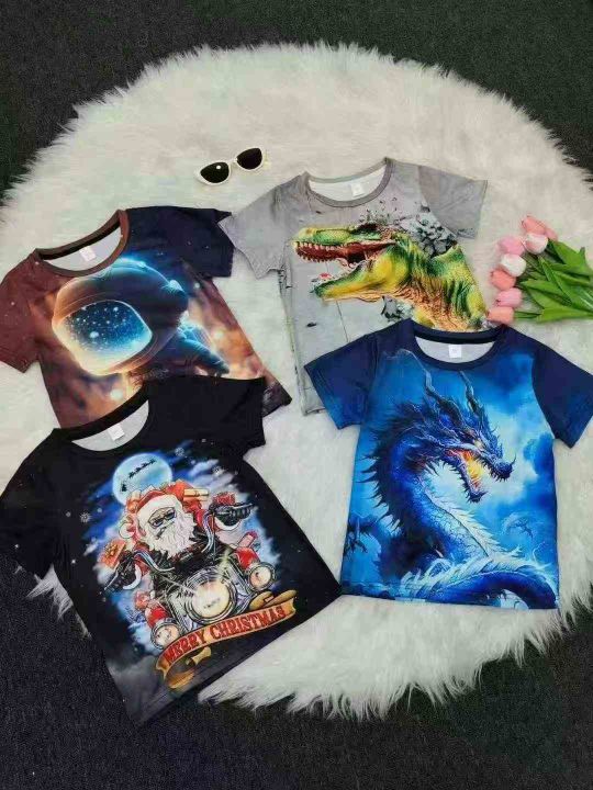 全清3.8元,夏季外贸跨境款圆领3D男女童印花短袖,后领包边,独立包装,码数5-6Y,7-8Y,9-10Y,11-12Y,13-14Y,数量12000件分货500起➕0.5