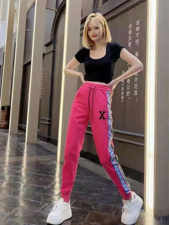 减龄卫裤春秋新版时尚百搭拼接字母哈伦裤休闲宽松显瘦百搭运动裤,颜色鲜艳吸睛[色],两边拼接字母设计独特小众[得意],面料舒适柔软,束脚有弹性无束缚不易跑[强],走线工整,时尚单品,适合任何场合的搭配,最低价,100件起,分货11.8