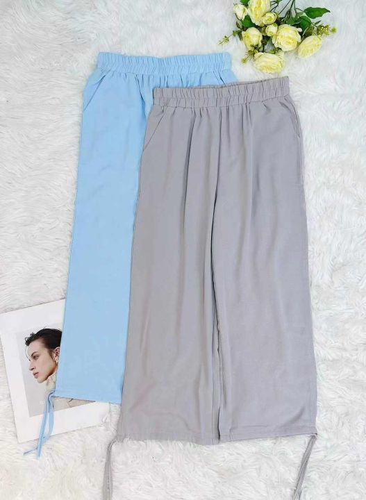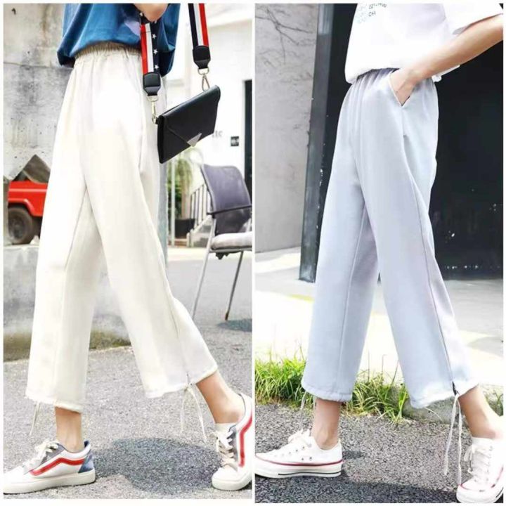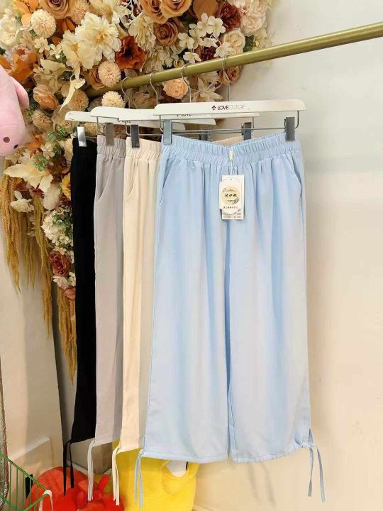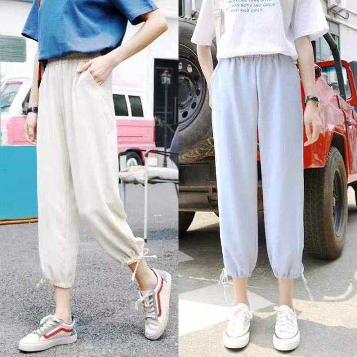 松紧腰休闲裤女夏季阔腿裤九分宽松直筒束脚裤子百搭显瘦长裤,裤腿绑带设计,一裤两穿️阔腿️束脚,面料舒服,透气凉爽包容性强,显瘦藏肉完美隐藏腿部所有不完美[强],风格百变,四季皆宜,分货9.9