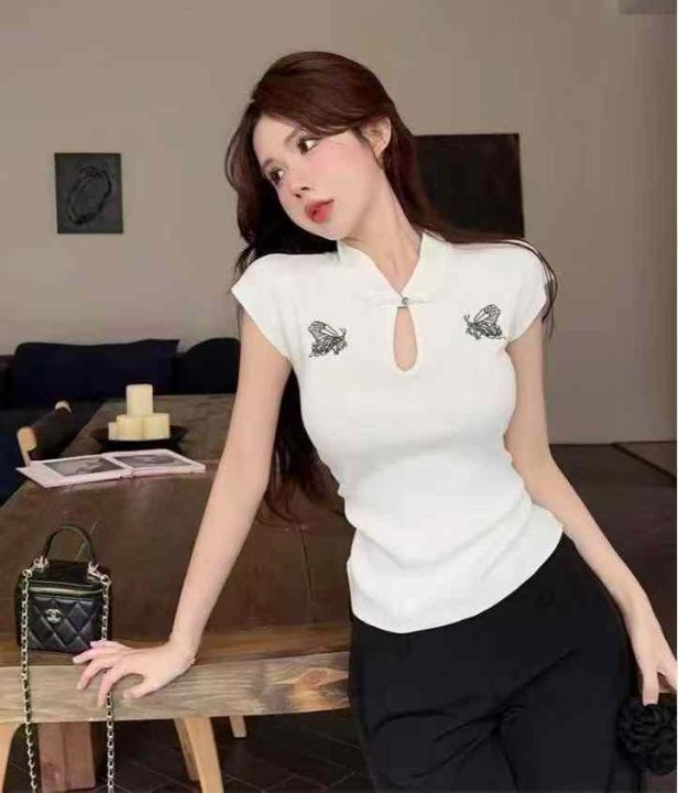 时尚洋气国风刺绣修身上衣新中式针织打底衫,图片款,高弹力品质好,独立包装,300件左右,清7.9,分➕1