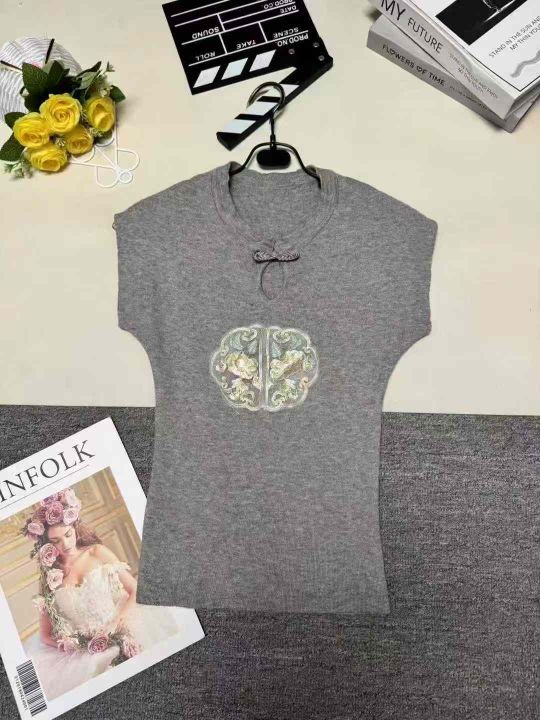 时尚洋气国风刺绣修身上衣新中式针织打底衫,图片款,...