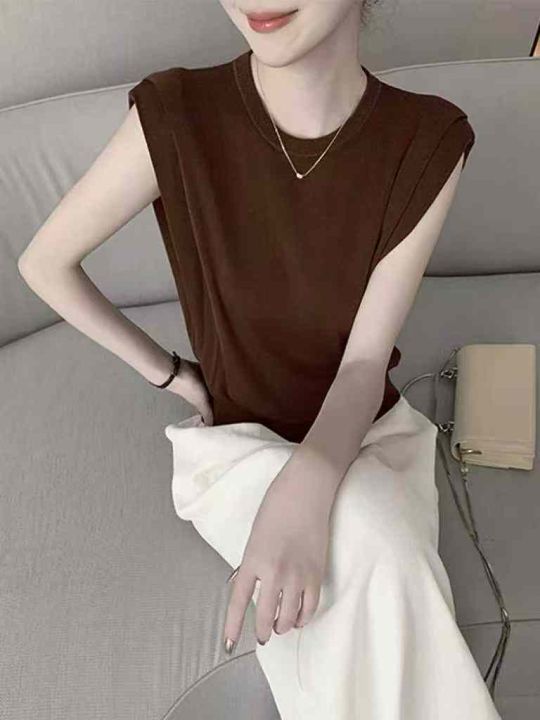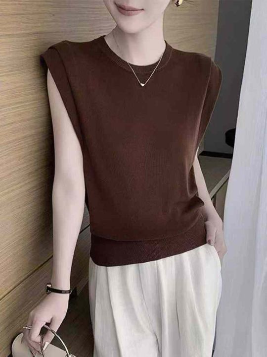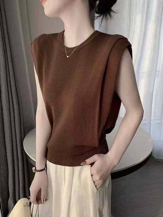 夏季新款高级感时尚复古绝美圆领无袖针织背心,独立包...