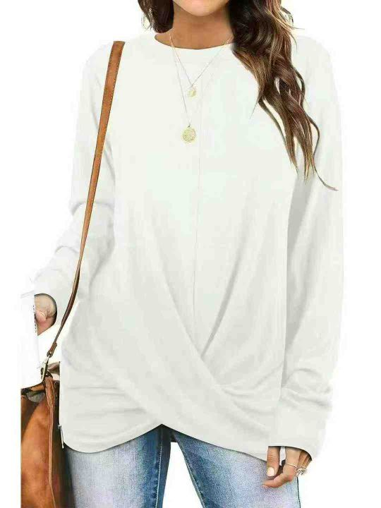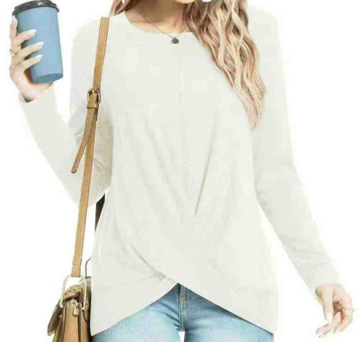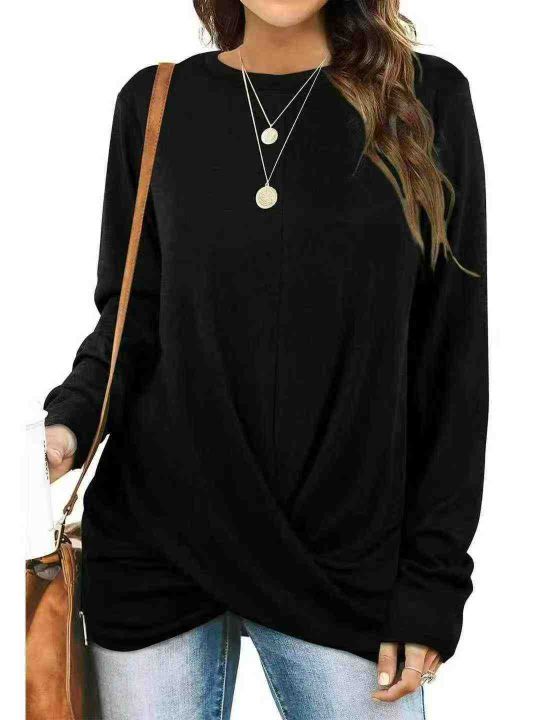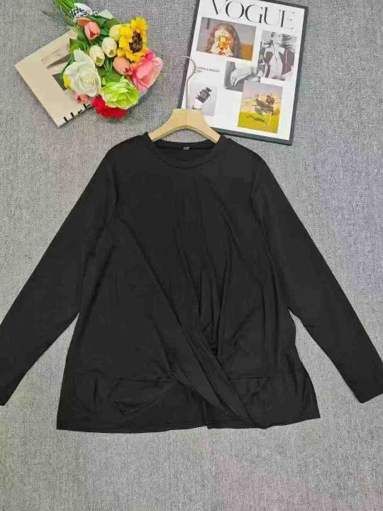电商仓回收550件外贸大码宽松扭结设计长袖T恤女,码数XL-5XL。版型够大,面料柔软舒适,质量款式都很不错,全部独立包装。