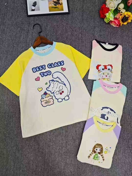 天猫仓回收2300件卡通可爱插肩袖儿童纯棉短袖T恤,码数90-150。纯棉面料柔软舒适,版型质量都特别好,货品超好,带纸板独立包装。