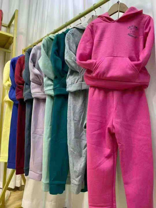 [太阳]9.9元清3800套新款时尚加绒男女童同款两件套装童卫衣卫裤!童装加绒连帽卫衣!100件10.9元!多色混配整手齐码,3-10岁!超多颜色和图案!
