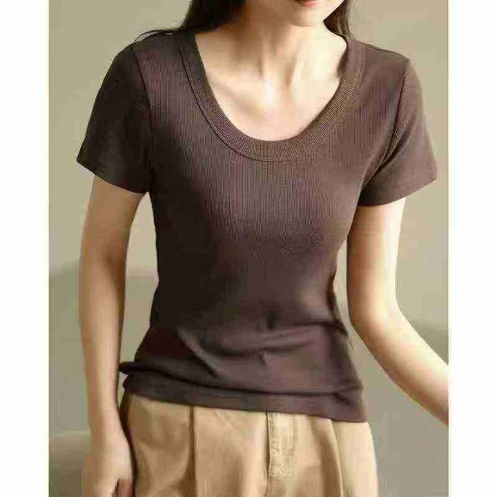 685件高品质U领正肩修身女装短袖T恤。95棉,面料柔软舒适,高弹力,品质非常好,其中深咖色少量。码数:M一L,独立包装,全清3.5