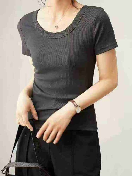 亏本清仓685件高品质U领正肩修身女装短袖T恤。95棉,...