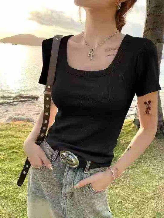 [月亮]:5.5清2242件[月亮]:简约时尚方领锁骨短袖T恤...