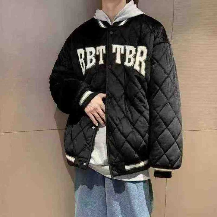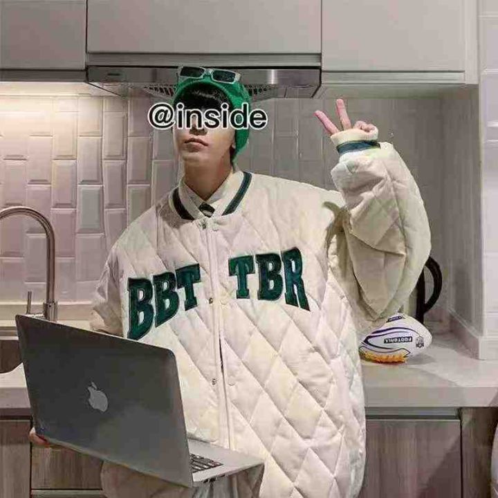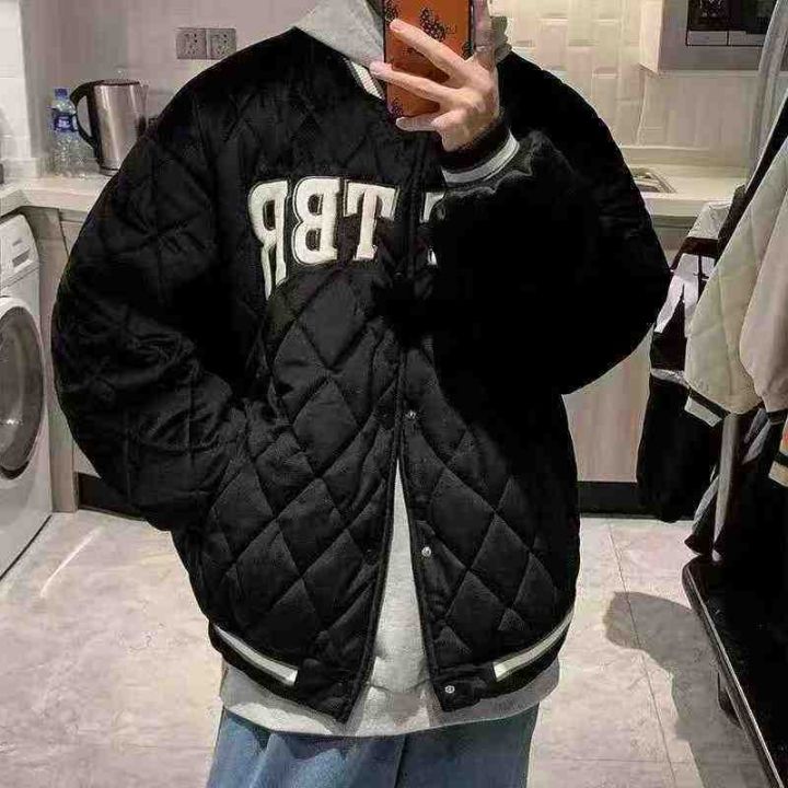 字母刺绣菱格棒球服宽松bf慵懒风小众炸街上衣oversize...