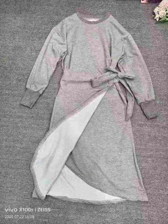 棉质裙女春秋中长款显瘦裙子韩版气质收腰长袖绑带连衣裙,面料厚实有重量,单款单色,1.2码,520件左右,8.8清,分货加1