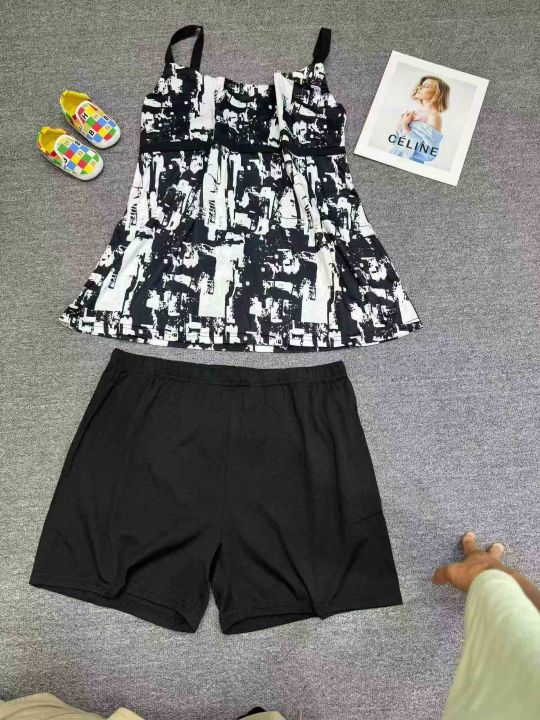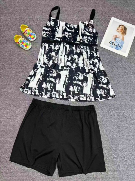外贸新款亚马逊欧美大码分体泳衣碎花裙边平角裤泳衣女...