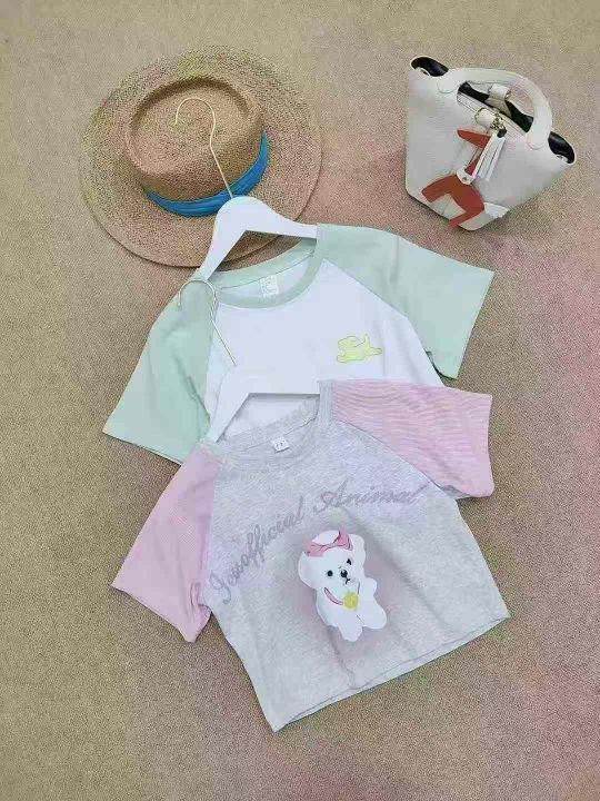 6.9清478件美式插肩纯棉/棉拼冰丝辣妹T恤12/165-180,...
