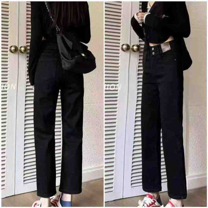 秋冬女装直筒烟管时尚加绒保暖高腰双排扣牛仔长裤,高品质!修饰腿型显瘦百搭!加绒保暖舒适,好货,靓货,分货100件起分货14