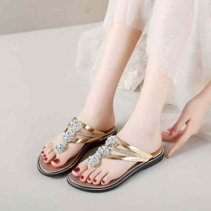 人字拖拖鞋女沙滩鞋 夏天外穿时尚女士水钻夹脚鞋凉鞋 平底凉拖鞋,独立包装,码数:35-45,数量4000双,全清5.5元,分货➕0.5