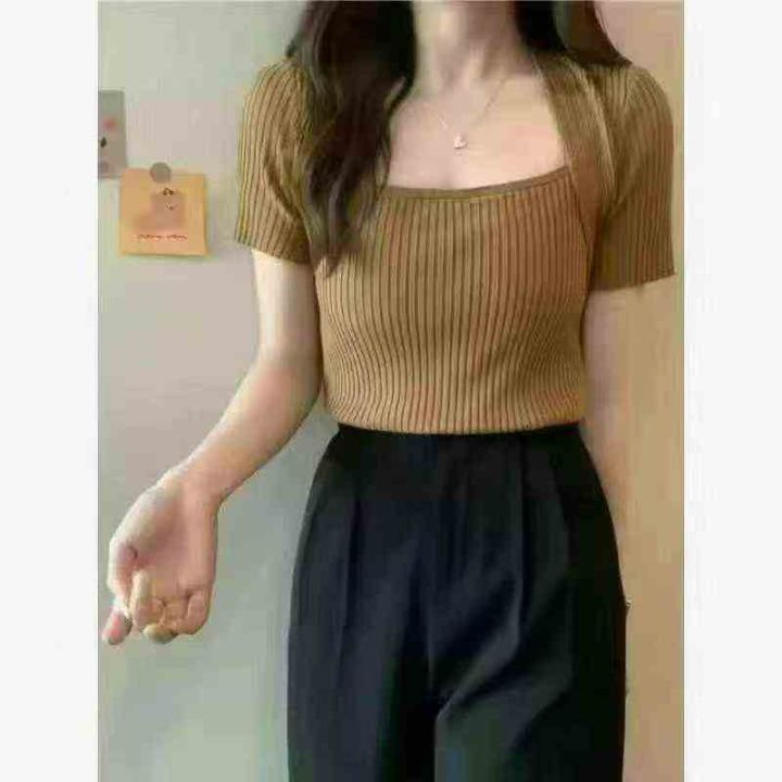 ️全清4.9 新款冰丝针织短袖t恤,靓妹夏季韩版修身显...