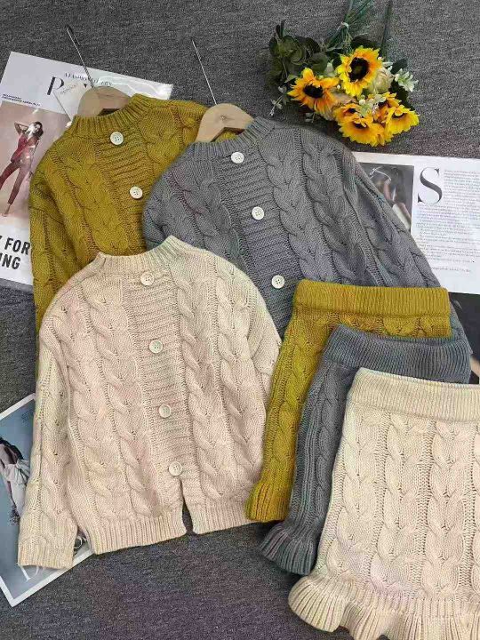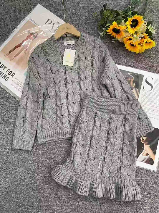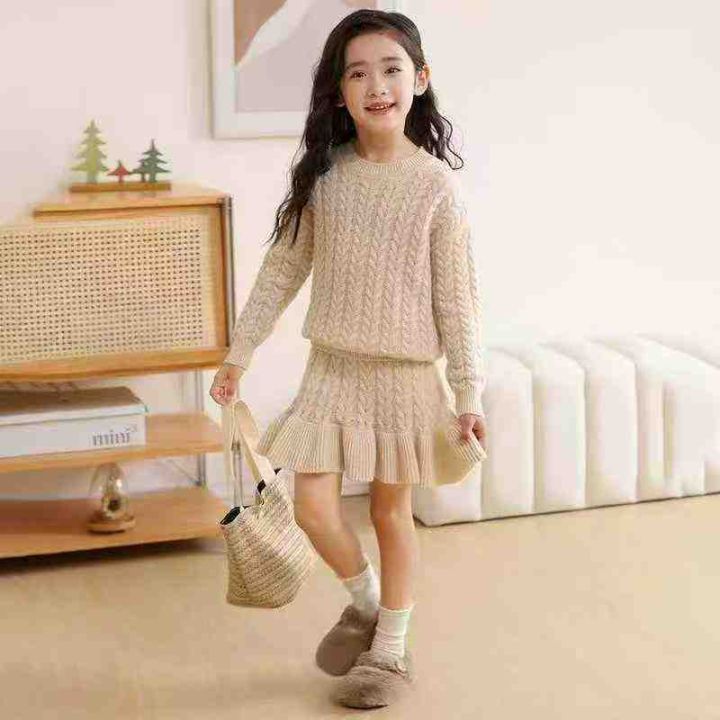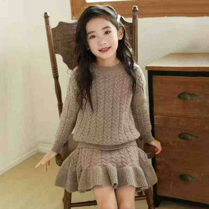 秋冬新款韩版童装麻花纹加厚粗针圆领套头毛衣+麻花纹加厚粗针荷叶边半身毛衣裙2件套,独立包装带吊牌,码数110--150码(码数清单看图)100套,全清9.9元超低价秒杀!