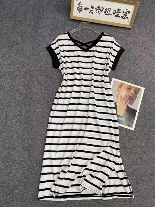 休闲条纹连衣裙226件7.5,面料柔软高弹力,下摆开叉,...