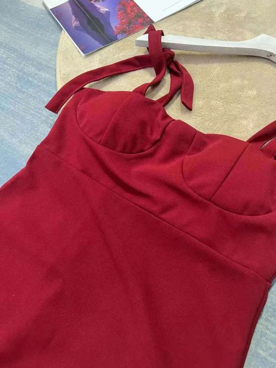 淘宝在售爆款法式复古红色辣妹性感吊带连衣裙,夏季20...