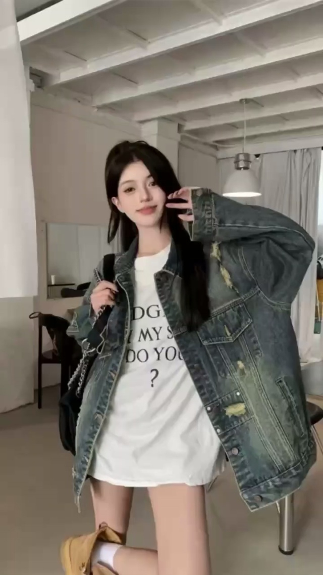 500件直播间收回来一批春秋杂款韩版洋气时尚潮流休闲牛仔外套!款式跟视频...