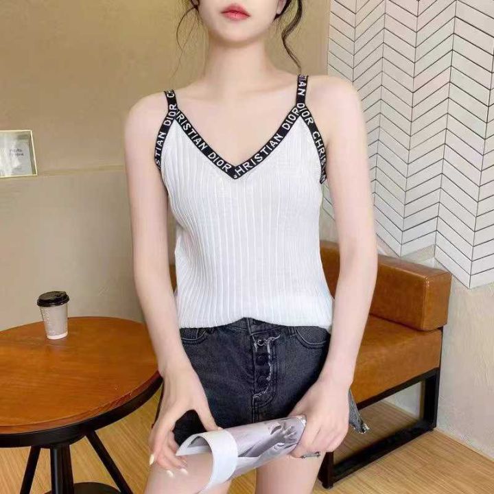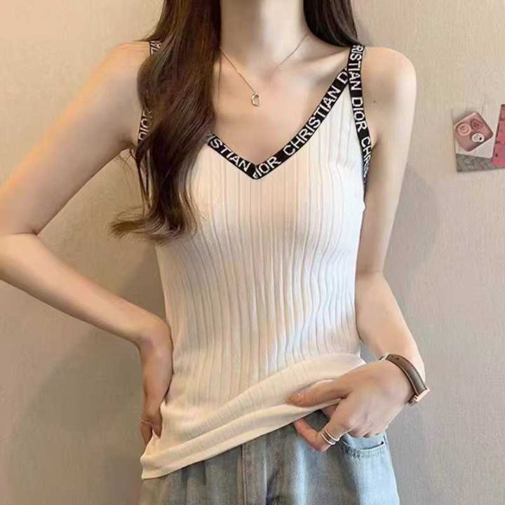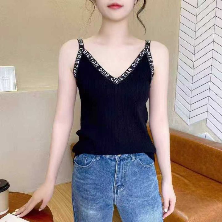 361件2025春夏季新款韩版V领字母背心吊带 大码女无袖外穿内搭打底上衣,螺纹面料 高弹力,单款两色 黑色只有一手,码数1-4码(S-XL码)独立包装。