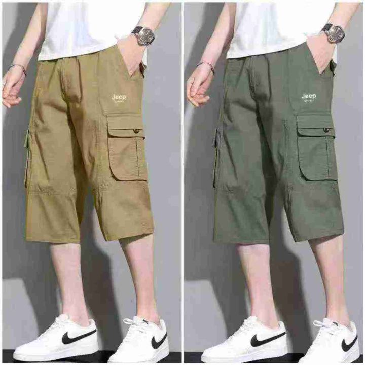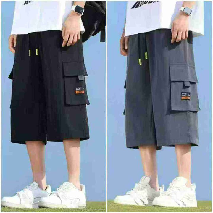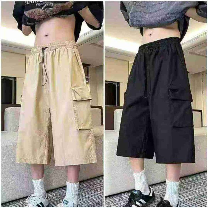 下身工装七分裤[太阳]全清8.8、5800件、均码。 夏季新款潮牌男装宽松休闲抽绳松紧腰多口袋拉链百搭七分工装裤,前后都有口袋,腰部有弹力松紧、不挑人、上身效果巨巨巨棒[强]这个价格太靓丽啦[666]部分有吊牌,全部全新独立包装,100件起多款混配9.3