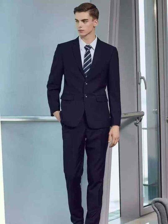 藏青色西装套装800套左右,商务修身正装免烫,两边开...
