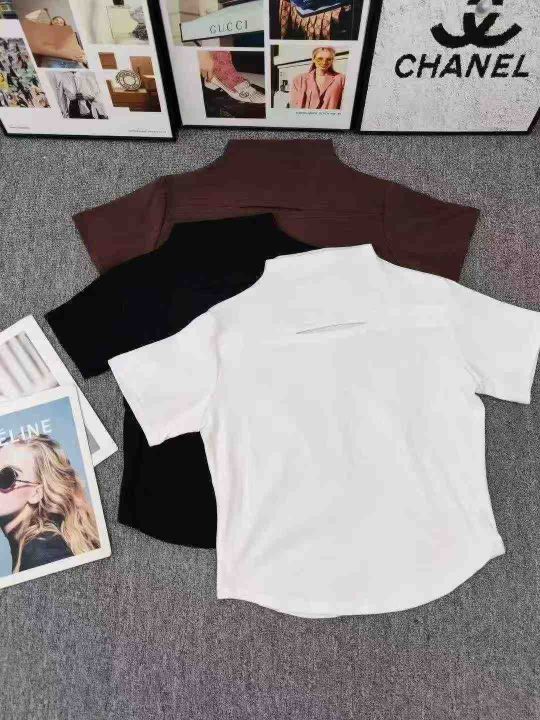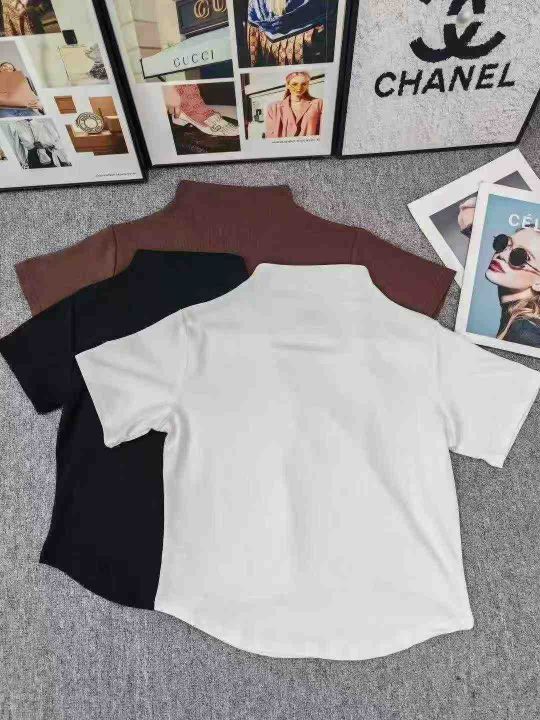 97件,辣妹纯欲镂空上衣半高领打底衫,单款三色(棕色少),十件一包装!码数:1-4