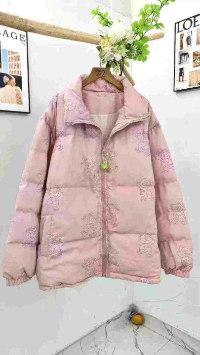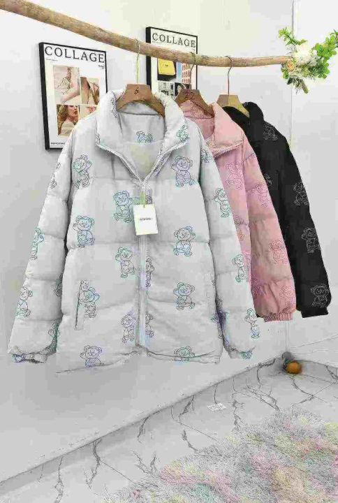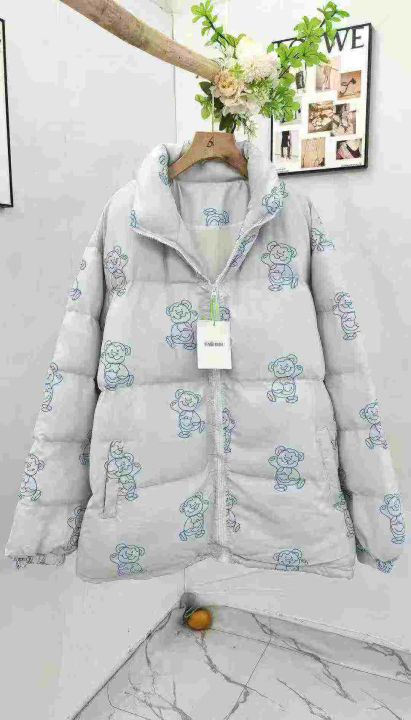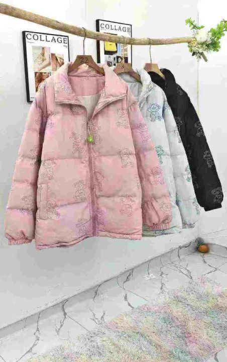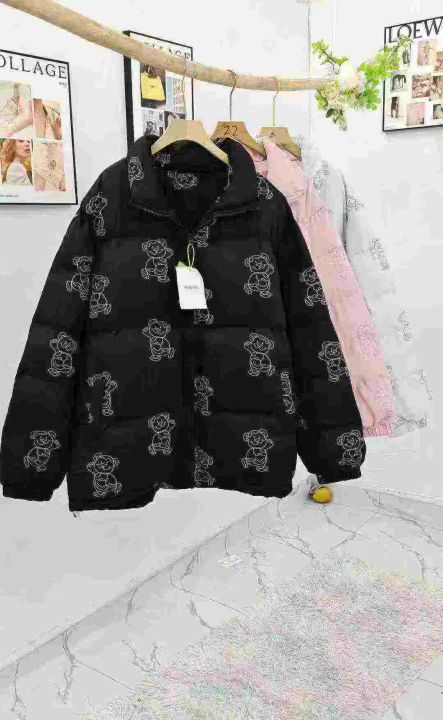 小熊男女同款棉服,清33.8(小熊印花)单款三色,浅蓝...