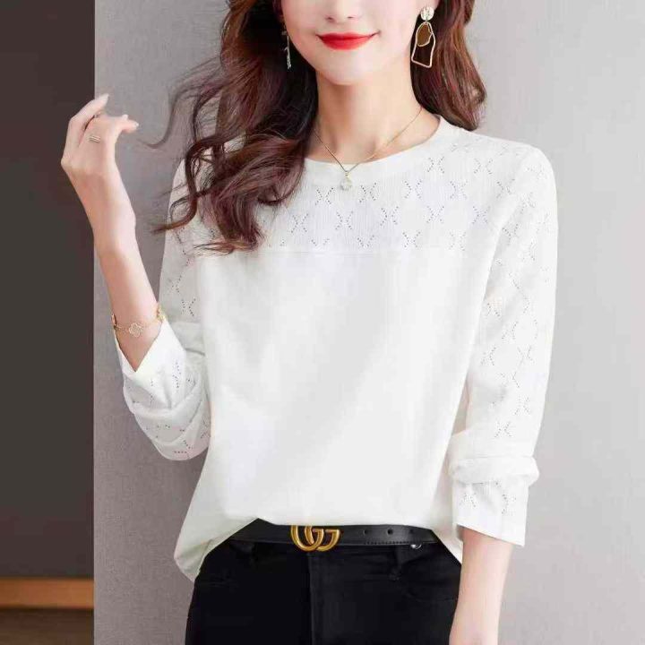5851件,女早秋季纯色百搭U领长袖T恤上衣女弹力修身高腰显瘦打底衫,一包3...