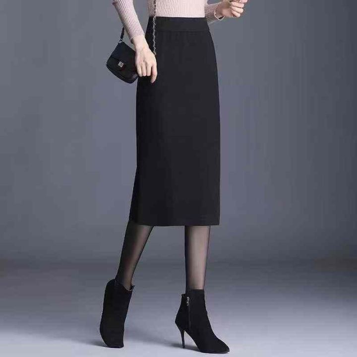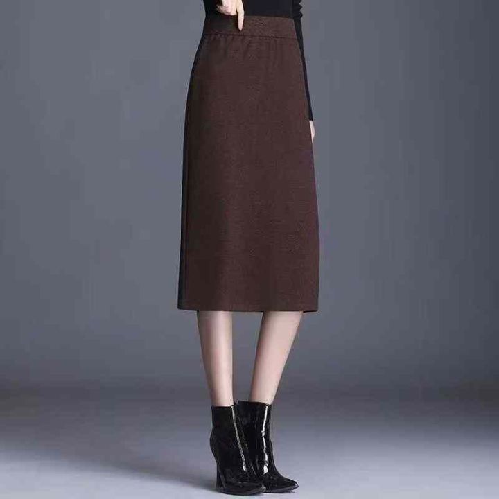 秋冬新款女装a字高腰显瘦松紧腰中长款包臀半身裙,独...