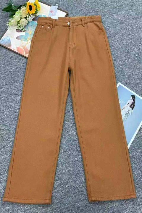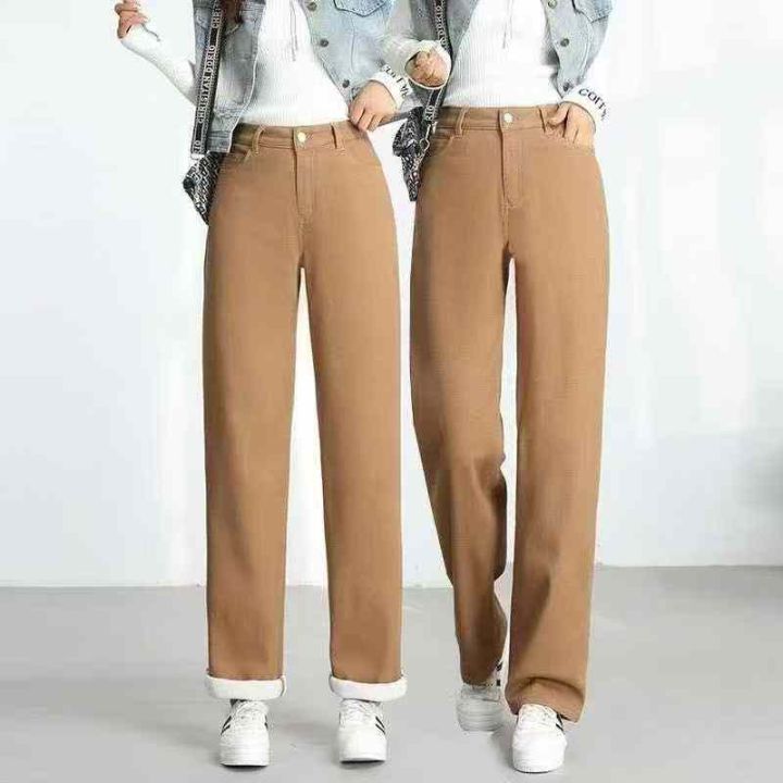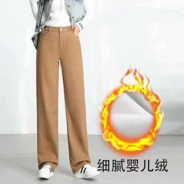 冬季新款女装加绒加厚洗水棉直筒阔腿牛仔裤,独立包装...