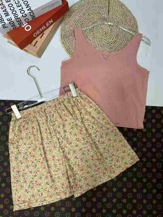 夏季女款家居服外出服背心短裤套装,背心有带胸垫,数量4600套左右,码数1-4,单款3色,独立包装,分货➕1随机配
