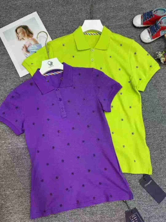 翻领T恤女短袖POLO衫有领体恤妈妈装纯棉带领绣花上衣,独立包装,码数M-2XL,数量178件,全清5.5