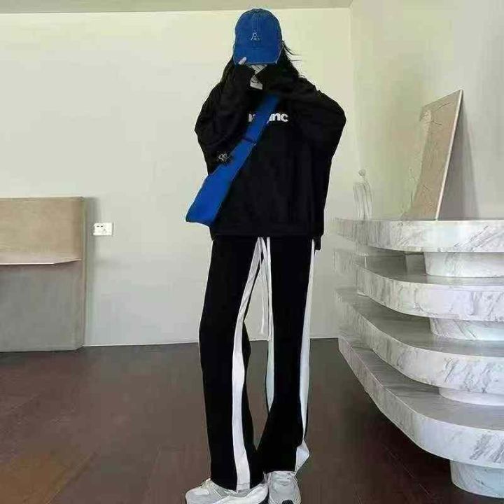 工厂回收490条潮牌黑白撞色男女同款显瘦休闲卫裤,码数s-2xl,宽松版型,上身效果超好,质量质感都超级好,都有包装。分货加1