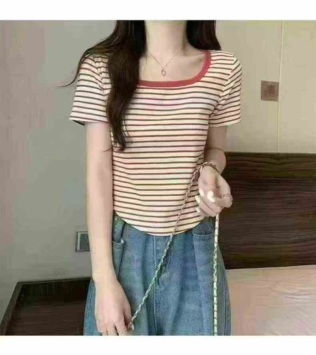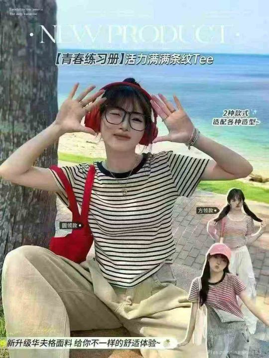 韩都衣舍条纹短袖t恤女2025夏季新款弧形设计感辣妹百搭上衣,792件,(型号508#3)1-3码,分货加1