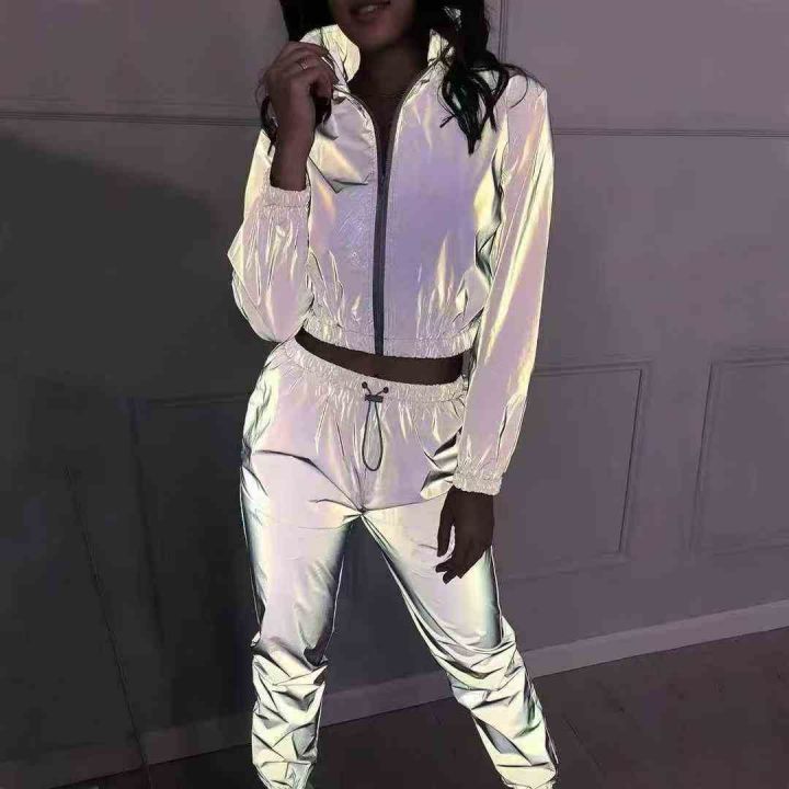 9.9清290套欧美女装套装2025秋季新款两件套亚马逊街头潮人新款反光外套长裤...