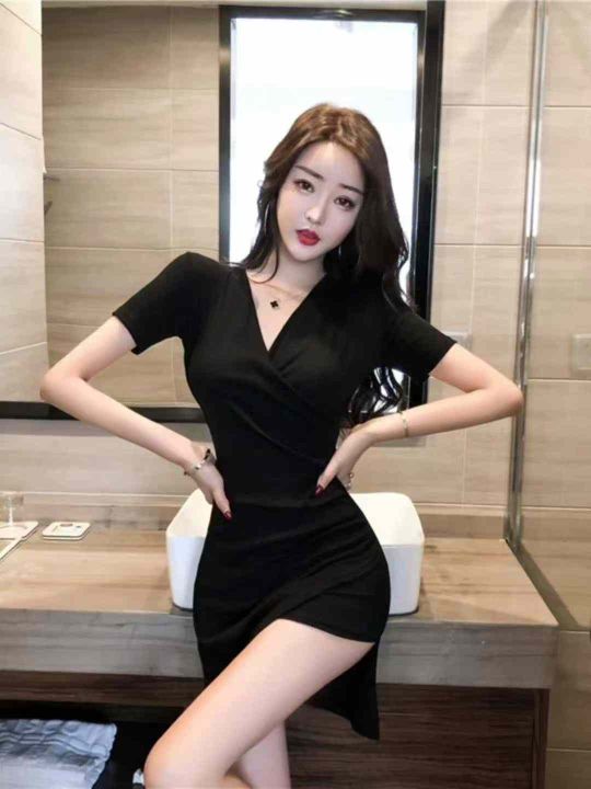 ⭐⭐540件左右纯欲辣妹性感紧身不规则包臀连衣裙,超...