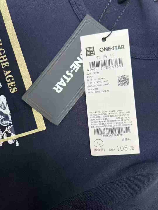 品牌男款纯棉短袖T恤,数量200件,单款两色,灰色,深宝蓝色,独立包装吊牌,网络图供参考大概款式。