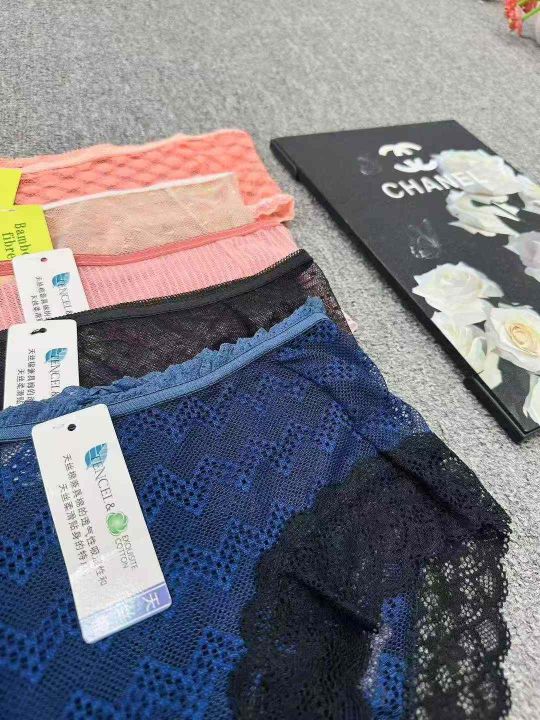 大版系列款蕾丝边女装高腰三角内裤3000件,均码,高弹力,能穿到150斤左右,12条一包装,5包一捆,一捆60条,全清2.38,分货2.68。