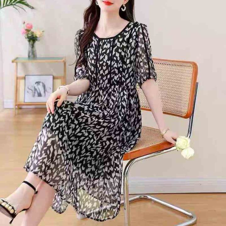 200条左右高品质减龄中年女夏季法式桑蚕丝连衣裙真丝...