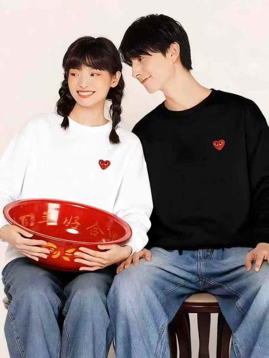 ☕️潮牌加绒卫衣男女秋冬加绒圆领卫衣刺绣爱心港风潮流情侣卫衣4123件全清...
