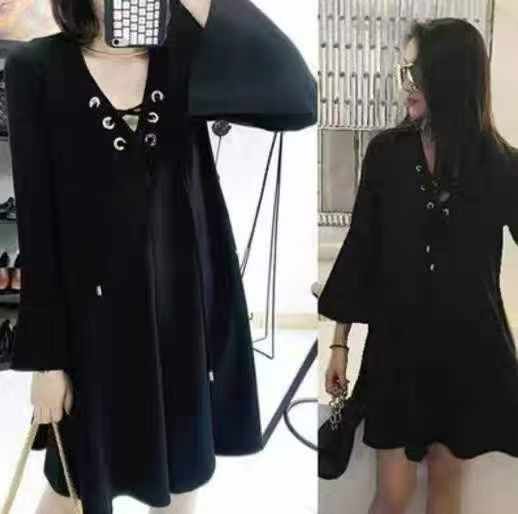 工厂回收154件名媛千金风设计感宽松高级感百搭黑色连衣裙,码数XL-4XL。面料柔软,舒适版型很好,带吊牌独立包装。