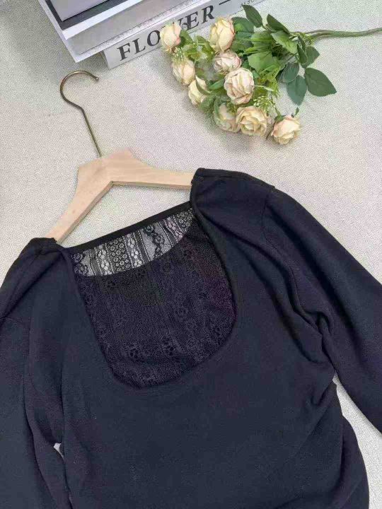 纯欲风露背蕾丝拼接长袖德绒修身内搭打底衫.单款单色...