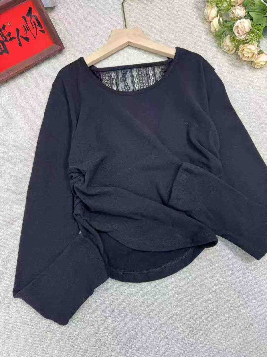 纯欲风露背蕾丝拼接长袖德绒修身内搭打底衫.单款单色两个码130件左右全清6.5分货加一