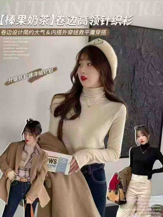 秋冬新款高品质网红弹力修身显瘦卷边高领温柔风包芯纱...