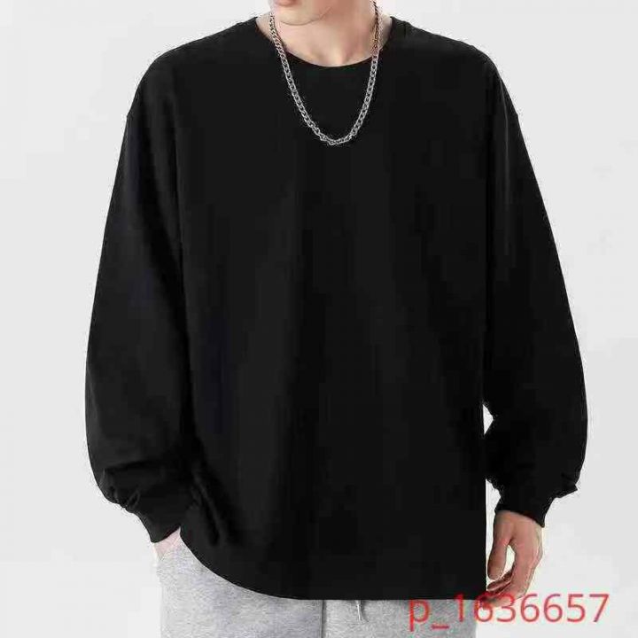 ☕️纯棉220克纯色男士长袖t恤新款春秋潮流ins宽松休闲美式纯色打底衫2800...