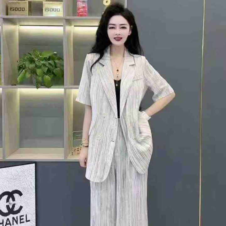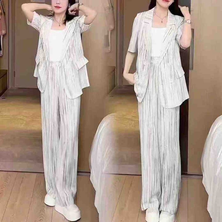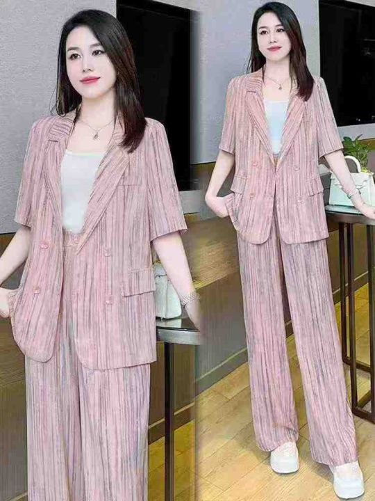 ① 时尚西服套装女2025新款短袖休闲薄款两件套,整款4...