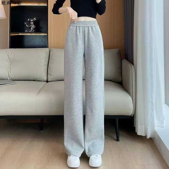 美式加绒显瘦宽松直筒裤高,华棉复合加绒,整款2色,...