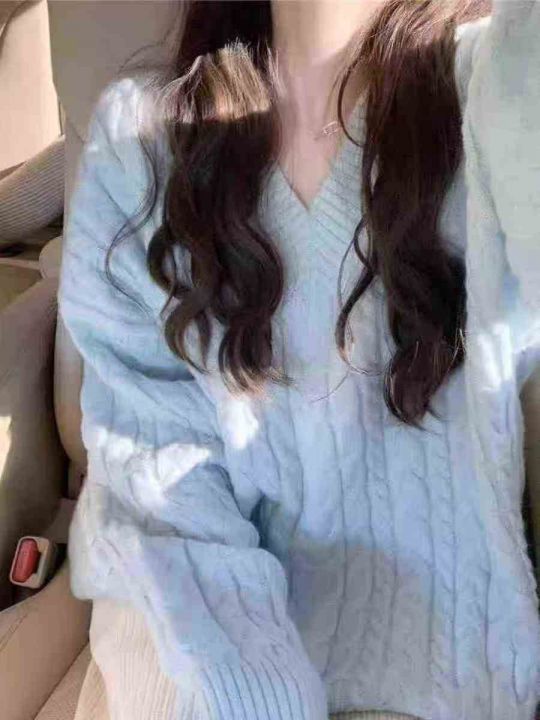 ☆8.8元,女韩版百搭慵懒风加厚V领宽松高级感麻花毛衣,70件,MLXL,独立包...