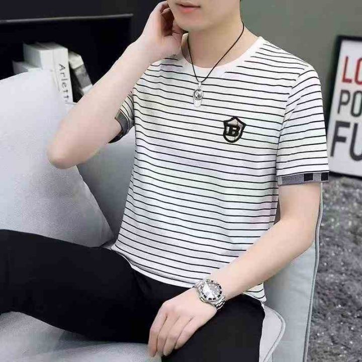 夏季修身圆领透气条纹刺绣短袖男装T恤,码数2.4.6M.L.XL,面料牛奶丝,独立...